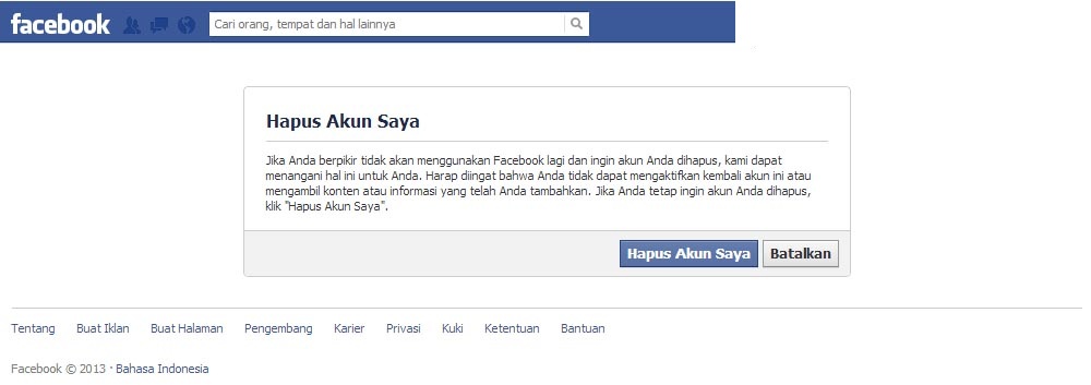 Bila anda melakukan langkah-langkah di atas dengan benar, maka sekarang anda sudah berhasil menghapus akun anda.. Harap di ingat bahwa proses penghapusan akun berlangsung selama kurun waktu 14 hari, sehingga bila dalam rentang waktu tersebut anda berubah pikiran.. Anda bisa membuka kembali akun anda dan membatalkan permintaan untuk menghapus akun tersebut..